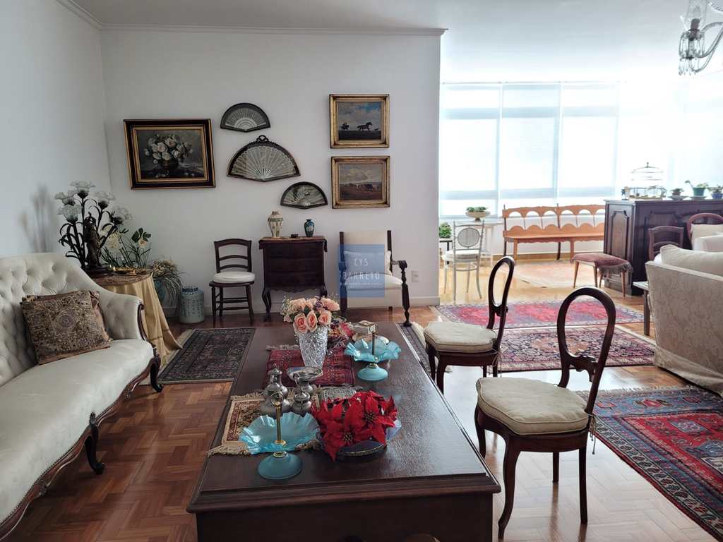 Apartamento amplo e reformado, com 400m², em prédio icônico e imponente na Av. Angélica, com frente recuada, vagas para visitantes e serviço de garagem.